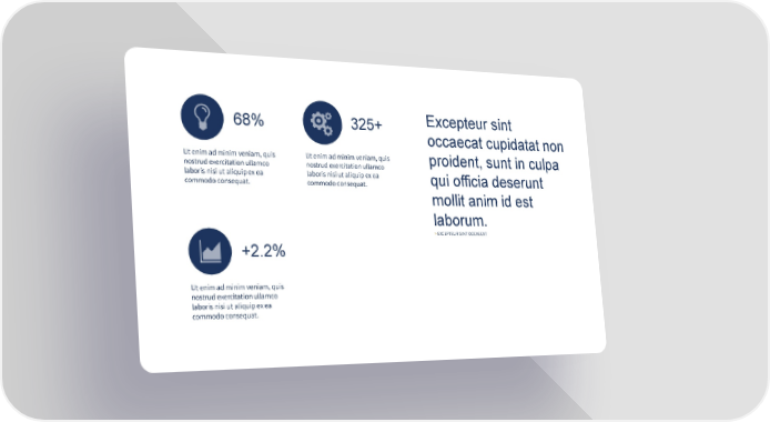 Excepteur sint 325+ 68% occaecat cupidatat non Ut enim ad minim veniam, quis Ut enim ad minim veniam, quis proident, sunt in culpa nostrud exercitation ullamco nostrud exercitation ullamco laboris nisi ut aliquip ex ea laboris nisi ut aliquip ex ea qui officia deserunt commodo consequat. commodo consequat. mollit anim id est laborum. > EXCEPTEUR SINT OCCAECAT +2.2% Ut enim ad minim veniam, quis nostrud exercitation ullamco laboris nisi ut aliquip ex ea commodo consequat.